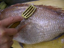 1.鱗を丁寧に取る。大き目の鱗はとっておこう。 |